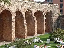 • in the northern part of Carrobbio, partially englobed in the modern buildings, a part of the 1st Century tower of Porta Ticinese;