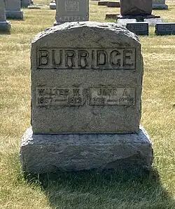 Burridge painted the principal curtain at the McVickers Theater: Chicago in 1833. He was in Albuquerque, New Mexico to work on the Panama Exposition when he died of heart disease in 1913.[4] He was buried at Forest Home Cemetery in Forest Park, Illinois.