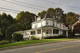 The Walter Keene House is a historic house located at 28 High Street in Stoneham, Massachusetts. The 2+1⁄2-story wood-frame building was constructed c. 1900 and serves as an excellent local example of a transitional Queen Anne-Colonial Revival house. Its hip roof and front porch are typically Colonial Revival, while the left-side turret and turned posts and balusters exhibit Queen Anne characteristics. The house was built for Walter Keene, a local shoe salesman and banker who played a significant role in developing much of the surrounding area. Stoneham's Keene Street is named in his honor.[2]