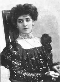 Wanda de Boncza was considered a stage beauty in Paris,[4] acting first at the Odéon, and then at the Comédie-Française. One English-language critic in 1901 described her stage presence as "little and dark, Parisian and perverse, she whose eyes are enigmas ... beautiful in her own odd way."[5] Her stage appearances included roles in Fiancée (1894),[6] La Barynia (1894),[1] On ne badine pas avec l'amour (1896),[7] Struensée (1898), La Conscience de l'enfant (1899), Alkestis (1900), and Le Marquis de Priola (1902).[8]