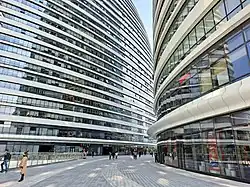 Wangjing SOHO (Chinese: 望京SOHO; pinyin: Wàngjīng SOHO) is a complex of three curvilinear asymmetric skyscrapers in Wangjing in Beijing, China, between central Beijing and Beijing Capital International Airport.[1] The towers contain both office and retail space. Originally the SOHO was designed as a two-tower complex but due to height concerns it was redesigned as a three-tower project featuring towers of lower maximum height.[2] One of the more than a dozen properties developed by SOHO China, the complex officially opened on 20 September 2014.[3] The tallest of the three towers is the seventh-tallest woman-designed building in the world.