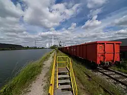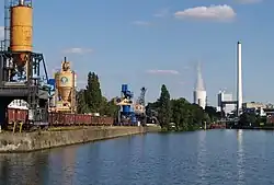 • Westhafen Wanne (literal: "Wanner west port"[5]): This area is now home to a logistics centre constructed in the 1990s known as the Güterverkehrszentrum Emscher[6] (or GVZ Emscher) with rail and road links as well as canal access, the WHE operates the rail links.[7] This port handles coal, and intermodal traffic.
