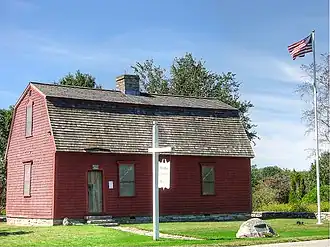 The War Office was built around 1732 by Captain Joseph Trumbull as a place to conduct his merchant business, but it is most significant for its use during the American Revolutionary War. It served as the war office of Connecticut Governor Jonathan Trumbull, with more than 1,000 councils of war taking place there. Visitors to the office included George Washington, Rochambeau, Lauzun, Lafayette, Admiral de Ternay, Generals Henry Knox, John Sullivan, and Israel Putnam, and political leaders Thomas Jefferson, Benjamin Franklin, John Adams, and John Jay.[2] The Lebanon Green was also where the French Army's cavalry wintered in 1780-81 before joining the rest of their army for the march to Yorktown, Virginia.[3] The War Office was abandoned and in deteriorating condition when it was given to the Connecticut chapter of the Sons of the American Revolution in 1891, and it has served as a museum since.[2]