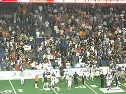 The games between the teams were notable for featuring some of the highest attendances in AFL history. The ArenaBowl IX title match of September 1, 1995 drew an Arena Bowl record crowd of 25,087 to Thunderdome to see the Storm defeat the Predators by 48–35.[3] Both teams were known to organize bus trips for supporters down Interstate 4 (hence the War on I-4) to the other city to see their squad play.[4]