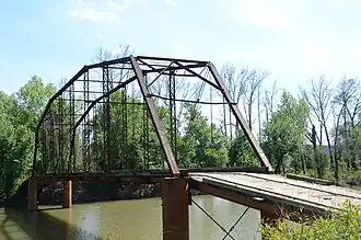 The Ward's Crossing Bridge is a historic bridge in rural eastern Yell County, Arkansas. The bridge carries County Road 8 across the Fourche La Fave River, south of Plainview. It is a single-span camelback through truss, whose main span measures 160 feet (49 m), with a total structure length, including approaches of 240 feet (73 m). The bridge is mounted on concrete piers, and has a wooden deck carrying a single lane of traffic. The bridge was built in 1905 by the Converse Bridge Company. It is the only camelback truss bridge in the county, and one of only three known in the state.[2]