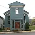 Historic structures in the town include the Cline Blacksmith Shop/Town Jail, a stone structure on Main Street erected around 1830. Two generations of the Cline family operated a blacksmith shop in the structure until 1895. In the earl twentieth century, the structure was converted for use as a town jail.[9] St. Peter's Lutheran Church was founded in 1840 by Rev. John Hamilton and erected its first church on the site in 1870. After this building collapsed in 1934, the present stone church, designed by A. Hensel Fink in Gothic Revival style.[10] The Old Presbyterian Church was constructed in the latter half of the nineteenth century and is a rare example of Italianate style in Wardensville. The Odd Fellows Hall was erected in 1856 on the southern edge of town near the intersection of Main Street and Trout Run Road.
