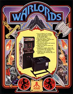 Warlords is a 1981 action video game developed and published by Atari, Inc. for arcades.[3] The game resembles a combination of Atari's earlier games Breakout and Quadrapong. Up to four players are able to play the game at the same time and the "castles" in the four corners of the screen are brick walls that can be destroyed with a flaming ball.