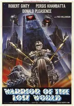 Warrior of the Lost World (also known as Mad Rider) is a 1983 Italian-American post-apocalyptic science fiction film written and directed by David Worth and starring Robert Ginty, Persis Khambatta, and Donald Pleasence. It was created and first released in Italy under the title Il Giustiziere della terra perduta ("Vigilante of the Lost Earth") in 1983 during the wide popularity of the Mad Max films, and many subsequently created post-apocalyptic films of the 1980s. Later the film was given another Italian title for VHS and television markets, I predatori dell'anno Omega ("Raiders of the Omega year").