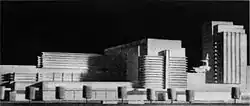 The station was designed in the Modernist Style, with then popular Art deco elements. The architects intended for the station to be multi-functional; plenty of space had been designed for various stores, entertainment, and restaurants. As construction continued in 1938, first passengers were able to use the partly completed station, however, the building was never completed because of the outbreak of the Second World War.