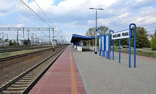 Warszawa Praga railway station is a railway station in the Targówek district of Warsaw, Poland. As of 2011, it is used by Koleje Mazowieckie, who run the KM9 services from Warszawa Wola or Warszawa Zachodnia through the north of the Masovian Voivodeship to Działdowo, in the Warmian-Masurian Voivodeship via Legionowo, Nasielsk, Modlin, Ciechanów and Mława, at all of which some trains terminate, and by Szybka Kolej Miejska, who run services to Wieliszew, with some trains terminating at Legionowo or Legionowo Piaski.