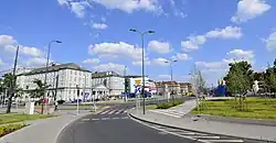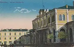 The Petersburg Train Station (Polish: Dworzec Petersburski) was built in 1863 as the final terminus of a new railroad linking Warsaw with Vilnius and St. Petersburg. The building itself was designed by Narcyz Zborzewski.[1] As the line used Russian gauge while another major railway line operating in Warsaw at the time (namely the Warsaw–Vienna Railway) used Standard gauge, the two could not have been connected. To allow passengers travelling from Vienna to St. Petersburg easier access to both terminals a horse-drawn tramway line was opened soon after the railway line's completion, thus giving birth to Warsaw's tramway network. The original train station had been blown up by withdrawing Russian troops in 1915 during World War I.