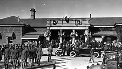 In 1920, the Prince of Wales (later Edward VIII) visited Warwick by train, where he inspected the local Boy Scouts at the railway station before travelling by car to the rotunda in Leslie Park.[3]