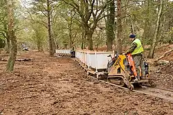 The Warwickslade Cutting Railway was a light railway temporarily built to fill in the Warwickslade Cutting, a straight drainage ditch dug circa 1850 in the New Forest of south-east England, with imported gravel and clay. In 2009, the Forestry Commission decided to obliterate it and replace it by a more natural meandering stream.[1]