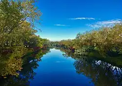 Wascana Creek in Les Sherman Park, West End, downstream from the Albert Memorial Bridge and Wascana Lake