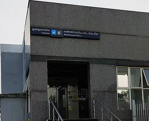Washermanpet is an underground metro station on the North-South Corridor of the Blue Line of Chennai Metro in Chennai, India.[1] This station serves the neighbourhoods of Washermanpet and Royapuram.