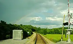 Rainbow and railroad tracks near Telford