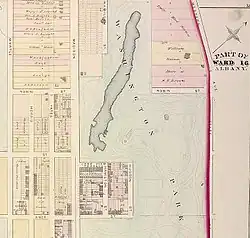 The New York Legislature passed a law in 1869 authorizing the creation of a large public park on the spot and the creation of the Board of Trustees of the Washington Park of the City of Albany (later Commissioners).[4][10] John Bogart and John Cuyler drew the plans for Washington Park in 1870. Bogart had worked for Olmsted and Vaux on Central Park in New York and later Bogart was the chief engineer for the New York City Department of Parks from 1872 to 1877.[6] From 1869 to 1872 R.H. Bingham was the chief engineer in charge of the drafting of the plans and the supervision of construction, after 1872 his assistant William S. Egerton took charge.[10] It was under Egerton that the formal garden settings were planted.[6]