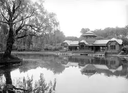 The current Washington Park Lake House was built in 1929 replacing the original stick style structure constructed in 1876. It is constructed in the Spanish Revival style with terracotta, terrazzo, brick, and guastavino tile.[6] The area in front of the lake house has been the site for the performance of plays by the Park Playhouse for over 20 years. A 900-seat amphitheater faces the lake house allowing for comfortable seating for the over 60,000 people who visit every year. A proposal by the city to turn the lake house into a 125-seat restaurant and 200-seat banquet hall with an expanded dock with boat, cross-country ski, and ice skate rentals failed to materialize due to a lack of interest from the private business sector.[20]