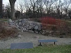 When Olmsted first examined the property, he saw a field filled with bare trees and decided to maintain its character by creating a meadow surrounded by trees. His plan for the park called for sheep to graze as a means of keeping the grass short. Cornell convinced Olmsted to include sporting areas, although Olmsted wanted a more natural feel to the park, which included a 13-acre (53,000 m2) lake.[7] The Western division was renamed Washington Park in 1881.[6]