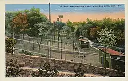 The Washington Park Zoo is a zoo located in Washington Park, Michigan City, Indiana, which covers 15 acres (61,000 m2) on a hilly sand dune close to the southeastern tip of Lake Michigan. The park and zoo were listed in the National Register of Historic Places in 1991.[2]