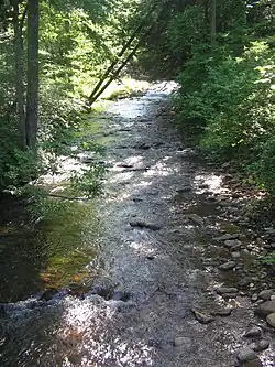 Small-scale lumbering continues in the Washington Township, but the forest is certified as well-managed "in an environmentally sensitive manner", and lumber from it qualifies for a "green label".[8] An Amish-owned and operated sawmill is on Pennsylvania Route 44 in Elimsport. It burned down on May 10, 2006 (causing $500,000 in damages) but was expected to be back in operation in a month.[9] Despite this small-scale lumbering, as of 2006 the forests have grown back and are mixed oak, with blueberry and mountain laurel bushes. White Deer Hole Creek and its tributaries also have stands of hemlock and thickets of rhododendron along them.[10]