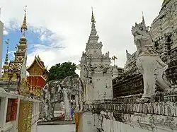 Wat Saen Fang (Thai: วัดแสนฝาง) is a Buddhist temple in Chiang Mai, Thailand. The temple was founded in the 1500s, but all extant structures date to the 1800s or later.[1] The viharn of Wat Saen Fang previously served as the royal residence (ho kham) of Kawirolot in the 1860s, and was converted into a viharn by his successor, Inthawichayanon in 1878.[1] The temple is also noted for its Burmese-style chedi, which is gilded with glass mosaic.[1] The ubosot, which is topped with kinnara, is a fusion of Burmese and Lan Na styles.[1]