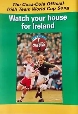 "Watch Your House for Ireland" is a song by the 1994 Republic of Ireland football squad, sponsored by Coca-Cola and with lead vocals by Christy Dignam. It was made for Ireland's 1994 World Cup campaign. The song reached the number one position in the Irish Singles chart in 1994 in the week it was released.[2] The proceeds went to the GOAL charity.[3]