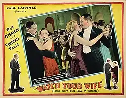 Watch Your Wife is a 1926 American silent comedy-drama film directed by Svend Gade and starring Virginia Valli, Pat O'Malley, and Nat Carr.[1][2]