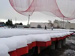 Water Sky Garden is a sculptural environment designed by artist Janet Echelman. The garden is located outside the Richmond Olympic Oval, an official venue for the 2010 Vancouver Olympic Games. The installation consists of a wetland treatment pond, 300 ft. boardwalk, two 52 ft. pedestrian bridges, two net sculptures, and a fountain.