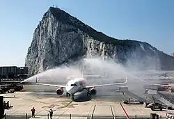 Media related to Water cannon salutes in aviation at Wikimedia Commons