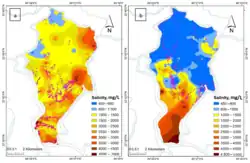 In general, the groundwater salinity increases from north to south in the country. But even within small areas, the groundwater salinity can vary a lot.[25]