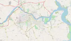 The city is situated at the head of Waterford Harbour (Loch Dá Chaoch or Cuan Phort Láirge).[3] The River Suir, which flows through Waterford City, has provided a basis for the city's long maritime history. The place downriver from Waterford where the Nore and the Barrow join the River Suir is known in Irish as Cumar na dTrí Uisce ("The confluence of the three waters"). Waterford Port has been one of Ireland's major ports for over a millennium. In the 19th century, shipbuilding was a major industry. The owners of the Neptune Shipyard, the Malcomson family, built and operated the largest fleet of iron steamers in the world between the mid-1850s and the late 1860s, including five trans-Atlantic passenger liners.[4]