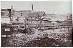 Waterford was developed in 1824 by Welcome Farnum, a Yankee entrepreneur, who purchased land, built a dam on the Branch River, and constructed the first textile mill called Red Mill. He named the village Waterford because many of the Irish workers in his mill came from Waterford, Ireland. The last mills in the area were constructed mid-nineteenth century. Waterford is home to St. Paul's Church (1851), originally served a largely Irish population, and sits on the Rhode Island/Massachusetts border. Adjacent to the church is the church school and many businesses.