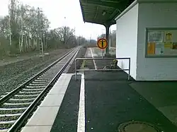 All trains to Essen operate on the northern track 1; trains to Bochum operate on platform 2. The central platform is 76 cm high and on it is a ticket machine and several display cases with current travel information. It is partially sheltered and is not accessible for the disabled.