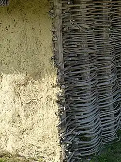 Evidence of wattle construction was found at Woodcutts Settlement from the British Iron Age,[1] and the Roman Vitruvius wrote about wattles in his book on architecture, De architectura,[2] but the technique goes back to Neolithic times.[3]