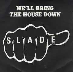 "We'll Bring the House Down" is a song by the British rock band Slade, released on 23 January 1981 as the lead single from their ninth studio album, We'll Bring the House Down.[2] It was written by lead vocalist Noddy Holder and bassist Jim Lea, and produced by Slade. The band's first single to reach the UK Top 40 since 1977, the song peaked at No. 10 in the UK, remaining in the chart for nine weeks.[3]