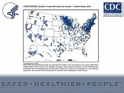 18. ^ "CDC – Cases by State – Lyme Disease." Centers for Disease Control and Prevention. https://www.cdc.gov/lyme/stats/chartstables/casesbymonth.html. 9 Sept. 2010. Web. 5 December 2011.