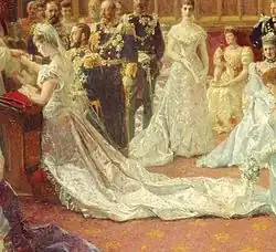 The official painters of the royal wedding were Heinrich von Angeli, Laurits Tuxen, and Luke Fildes.[15]