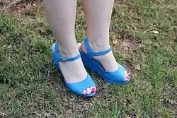 Wedges for women are more common and often have a sole that is much thicker at the back than at the front, making them high-heeled boots or shoes. Wedgies for women were popularized by Salvatore Ferragamo, who introduced the design to the Italian market in the late 1930s.[2] The evolution of wedge heels became more and more colorful and outrageous through the 1970s-1990s.