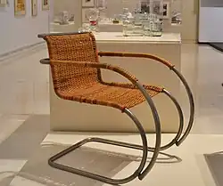 The Weissenhof chair (also called MR 10 or MR 20) is a chair designed by the German architect and designer Ludwig Mies van der Rohe, in 1927. This first, springy cantilever chair was shown at the Weissenhofsiedlung Exhibition in 1927. It was made of 25 mm steel tube and with a wicker framework proposed by Lilly Reich. The MR20 version has forearms.[1]