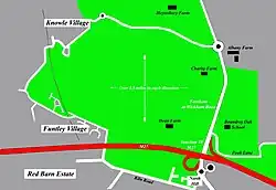Welborne is a town under construction to the north of Fareham, England.[1] It is intended to include 6,000 houses with businesses and community facilities. A plan for the development was submitted for central Government examination on 23 June 2014,[2] and modifications were published in January 2015 following the inspector's preliminary comments.[3] Fareham Borough Council formally adopted the plan for Welborne as part of its statutory Local Plan for the Borough on 8 June 2015.[4] Construction is scheduled in phases between 2015 and 2036,[5] and as of 2019 the town was due to be completed by 2038.[6] Transport plans include an upgrade to Junction 10 of the M27 motorway and a bus rapid transit route.