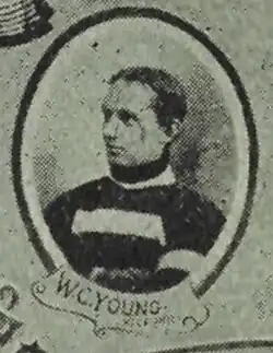 "Chalk" as he was nicknamed, played for both the Ottawa Hockey Club and Ottawa Football Club.[2] He lived at the fire station in Ottawa where his father was the chief superintendent. Young was active on the organizational side, being on the executive committee, served as team captain and was a vice-president of the AHAC from 1893 to 1897.[3] He played on defence, the position of coverpoint, teamed with Harvey Pulford "The Slugger" on point. The two complemented each other, Chalk often leading the rush, while Pulford would be the steady player backing up the team. His final season with Ottawa was 1899.[3]