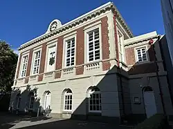 Wellington College's Pavilion, Firth House, and the Gifford Observatory were opened on 1 December, 1924. The War Memorial Hall was opened on 2 March, 1928, financially supported by £6000 from the Old Boys' Association.[7] The War Memorial Hall and classroom wings were demolished by the Ministry of Works and replaced in the 1960s with a new hall and seven-storey Tower classroom block due to its lack of earthquake reinforcements.[8] The stained glass window from the front of the War Memorial Hall is now in the front of the existing hall.