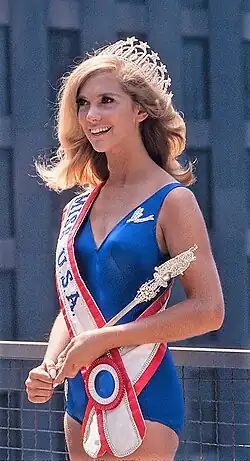9. ^ Associated Press (1970-05-18). "Retiring Miss USA Tells of Disillusionment". Daytona Beach Morning Journal.