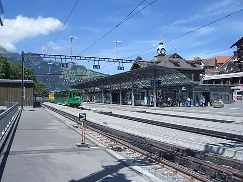 Wengen is a railway station in the car free resort of Wengen in the Bernese Oberland region of Switzerland. The station is on the Wengernalpbahn (WAB), whose trains operate from Lauterbrunnen to Kleine Scheidegg via Wengen. Administratively, the station is in the municipality of Lauterbrunnen in the canton of Bern.[1][2]
