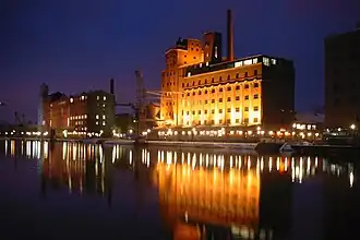 The Werhahnmühle is a complex of offices, restaurants and a museum located in Duisburg's Inner Harbour[1] It occupies the former silo and mill buildings of the Rheinische Mühlenwerke Werhahn. It is part of the Duisburg: Town and Harbour section of the Ruhr Industrial Heritage Trail.