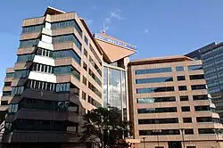 The Wesleyan Head Office building is one of the most well-known buildings in Birmingham thanks to its unusual cruciform shape and its large double pyramid shaped roof. The building was constructed by Peter Hing & Jones between 1988 and 1991.[25]