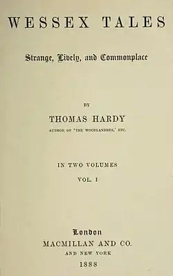 Wessex Tales is an 1888 collection of tales written by English novelist and poet Thomas Hardy, many of which are set before Hardy's birth in 1840.