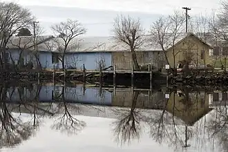 West Denton Warehouse-Wharf is a historic warehouse located at West Denton, Caroline County, Maryland. It is an early-20th century timber-framed warehouse structure situated along the west bank of the upper Choptank River. The earliest section was built about 1850, and is the 40 foot x 100 foot center portion. The north (40 foot x 20 foot) and south (40 foot x 40 foot) additions were built in the 1940s. It is a representative example of a type of structure which served various functions in connection with waterborne commerce, and is one of only two remaining riverfront warehouses in Maryland.[2]