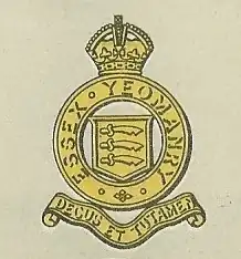 The Imperial Yeomanry were subsumed into the new Territorial Force (TF) under the Haldane Reforms of 1908.[40][41][42] The regiment simply dropped 'Imperial' from the title and was designated as Dragoons. Lieutenant-Col Colvin handed over command of the regiment to Lt-Col 'Ned' Deacon in February 1911.[10][6][9][43]